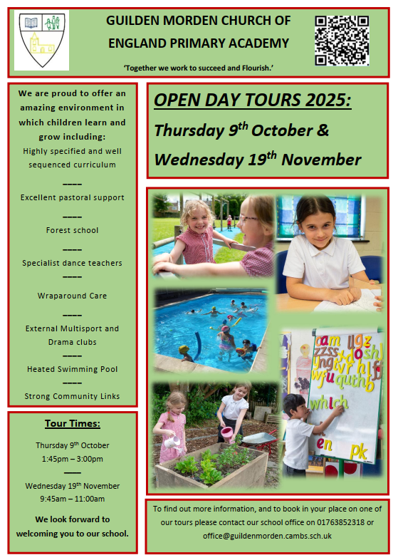 If you wish to visit the School or Pre-school, please contact Fran at the office and she will help you arrange a suitable date and time. office@guildenmorden.cambs.sch.uk